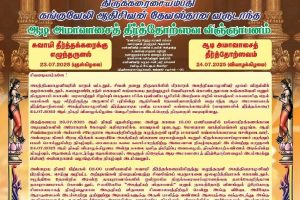 கங்குவேலி ஆதிசிவன் ஆடிஅமாவாசை தீர்த்தோற்ஸவம்..! மூதூர் – திருக்கரைசையம்பதி கங்குவேலி ஆதிசிவன் தேவஸ்தான ஆடி அமாவாசை தீர்த்தோற்ஸவம் எதிர்வரும் வியாழக்கிழமை (24) மகாவலி கங்கைக்கரையிலே இடம்பெறவுள்ளது. எதிர்வரும் புதன்கிழமை (23) காலை 10.00 மணியளவில் ஆதிசிவப்பெருமான் அம்பாள் சமேதராக ஆலயத்தில் இருந்து எழுந்தருளி... Read more »