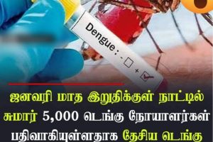 ஜனவரி மாதத்தில் 5,000 டெங்கு நோயாளர்கள்.! இந்த ஆண்டு ஜனவரி மாத இறுதிக்குள் நாட்டில் சுமார் 5,000 டெங்கு நோயாளர்கள் பதிவாகியுள்ளதாக தேசிய டெங்கு கட்டுப்பாட்டு பிரிவு தெரிவித்துள்ளது. கடந்த மாதத்தில் இரண்டு டெங்கு இறப்புகளும் பதிவாகியுள்ளதாக அந்தப் பிரிவு தெரிவித்துள்ளது. ஜனவரி மாத... Read more »