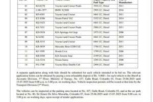 எரிசக்தி அமைச்சு: 14 சொகுசு மற்றும் பாவனையற்ற வாகனங்கள் பகிரங்க ஏலத்தில்! எரிசக்தி அமைச்சு, தற்போது அமைச்சின் வசம் உள்ள 14 சொகுசு மற்றும் பாவனையற்ற வாகனங்களை விற்பனை செய்வதற்கான பகிரங்க டெண்டரை அறிவித்துள்ளது. இது ஆர்வமுள்ள வாங்குபவர்களுக்கு பலதரப்பட்ட உயர்தர மற்றும் பயன்பாட்டு... Read more »