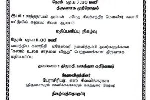 திருவாசக முற்றோதலில் உலக சாதனை பெற்ற பெண்ணிற்கு கலாம் உலக சாதனை விருது..! தென்மராட்சி மட்டுவில் கிராமத்தில் 07.09.2025 ஞாயிற்றுக்கிழமை திருவாசக முற்றோதலில் உலக சாதனை படைத்த பெண்ணிற்கு கலாம் உலக சாதனைப் புத்தகம் விருது வழங்கும் நிகழ்வு 07/09 ஞாயிற்றுக்கிழமை காலை 11.30... Read more »