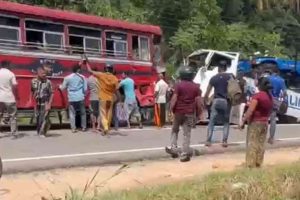 லொறியுடன் பேருந்து மோதி விபத்து..! புத்தல – மொனராகலை பிரதான வீதியில், 11 ஆம் மைல்கல் பகுதியில் இலங்கை போக்குவரத்துச் சபைக்குச் சொந்தமான பேருந்தும் லொறி ஒன்றும் மோதி விபத்துக்குள்ளாகியுள்ளது. இந்த விபத்து இன்று ( 10) மதியம் இடம்பெற்றதாக “அத தெரண” செய்தியாளர்... Read more »