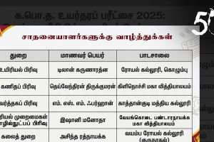 க.பொ.த உயர்தரம் 2025: அகில இலங்கை ரீதியில் முதலிடம் பிடித்த சாதனையாளர்கள் இலங்கை பரீட்சைத் திணைக்களத்தினால் வெளியிடப்பட்ட பெறுபேறுகளின் படி, ஒவ்வொரு பாடப்பிரிவுகளிலும் முதலிடம் பெற்ற மாணவர்களின் விபரங்கள் பின்வருமாறு: உயிரியல் விஞ்ஞானப் பிரிவு (Biology) – மாணவர்: டிலான் கருணாரத்ன – பாடசாலை:... Read more »