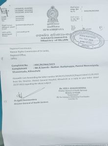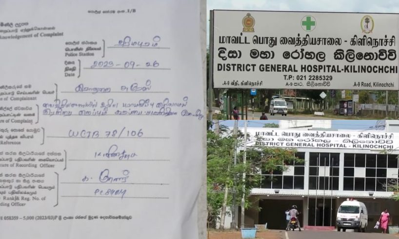 கிளிநொச்சி மாவட்ட பொது வைத்தியசாலையில் உரிய பராமரிப்பு இன்மையால் குழந்தை இறந்தமை தொடர்பிலும் மனைவியின் கர்ப்பப்பை அகற்றப்பட்டமை தொடர்பிலும் இராசதுரை சுரேஷ் என்பவரால் தர்மபுரம் பொலிஸ் நிலையத்தில் முறைப்பாடு செய்யப்பட்டுள்ளது.