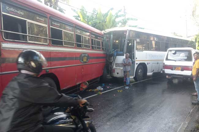 பெலியத்த பொலிஸ் பிரிவின் ஹெட்டியாராச்சி வளைவில் தனியார் பேருந்தும் இலங்கை போக்குவரத்து சபை பேருந்தும் நேருக்கு நேர் மோதி விபத்துக்குள்ளாகியுள்ளது.
