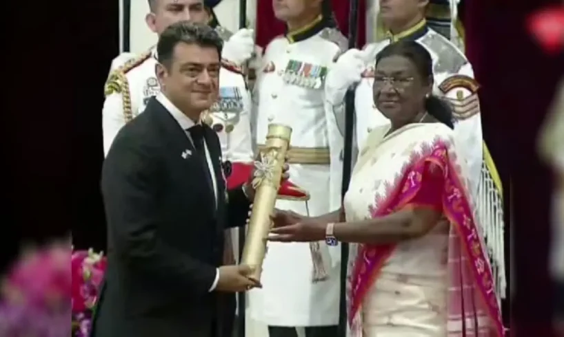 பிரதமர் நரேந்திர மோடி, மத்திய அமைச்சர்கள் பங்கேற்ற விழாவில் குடியரசு தலைவர் திரௌபதி முர்முவிடம் இருந்து நடிகர் அஜித், பத்ம பூஷன் விருதை நேற்று திங்கட்கிழமை பெற்றுள்ளார்.