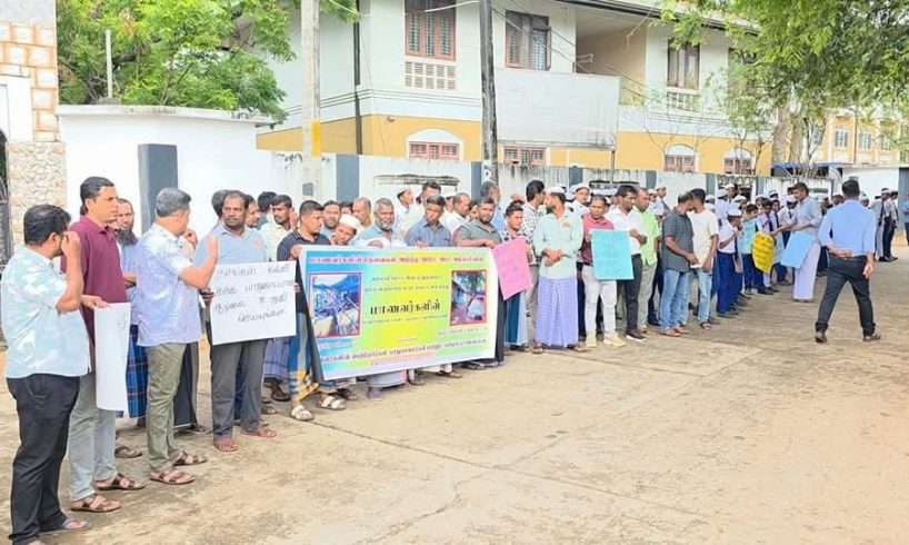 மூதூர் மத்திய கல்லூரியில் நிலவும் கட்டிட தட்டுப்பாட்டை நிவர்த்திக்க கோரி இன்று (16) கல்லூரியின் முன்பாக ஆர்ப்பாட்டம் இடம்பெற்றது