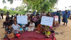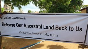 மயிலிட்டிச் சந்தியில் காணி உரிமையாளர்களால் முன்னெடுக்கப்படும் போராட்டத்தில் பதாதைகளைத் தாங்கியவாறு இராணுவத்தின் கட்டுப்பாட்டில் கடந்த 30 வருடங்களுக்கு மேலாக இருந்து வருகின்ற காணிகளை விடுவிக்க கோரிய அமைதிவழிப் போராட்டம் இடம்பெற்று வருகிறது.