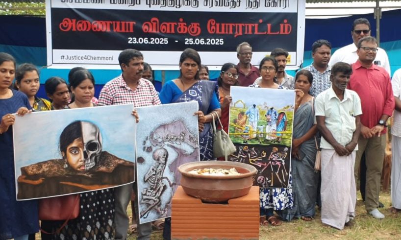 பொதுமக்கள், மக்கள் பிரதிநிதிகள், சமூக ஆர்வலர்கள் ஏற்பாட்டில் காணாமல் ஆக்கப்பட்டவர்கள், மற்றும் செம்மணி புதைகுழி தொடர்பான உயிரிழப்புகள் குறித்து விசாரணை நடத்த வலியுறுத்தி செம்மணியில் அணையா விளக்கு கவனயீர்ப்பு போராட்டம் ஆரம்பிக்கப்பட்டுள்ளது.