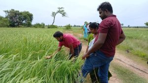கிளிநொச்சி மாவட்ட இரணைமடு கீழ்பகுதியான புளியம்பொக்கனை கமநல சேவை பிரிவுக்குட்பட்ட விவசாயிகளின் சிறுபோக செய்கையில் களை நெல் (பன்றி நெல்)தாக்கம் ஏற்பட்டுள்ளதையடுத்து குறித்த பகுதிக்கு இன்று (23) கள விஜயம் ஒன்றினை பிரதி விவசாய பணிப்பாளர் நெல் ஆராய்ச்சி நிலையம் பரந்தன்,பத்தலகொட R M N H சேனாநாயக்க மற்றும் உதவி விசாயப் பணிப்பாளர் , V சோதிலட்சுமி ஆகியோர் புளியம்பொக்கனை வயல் நிலங்களை பார்வையிட்டனர்.
