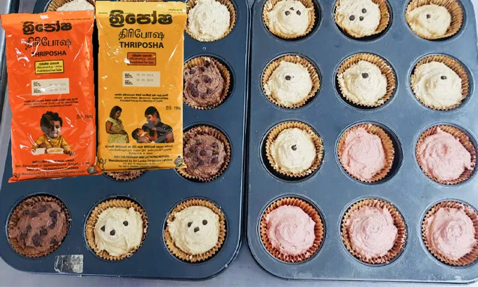 சொக்லேட், வாழைப்பழம், வெண்ணிலா, ஸ்ட்ராபெரி மற்றும் மாம்பழ சுவைகளில் திரிபோஷா Cup Cake கள் தயாரிக்கப்படவுள்ளன.