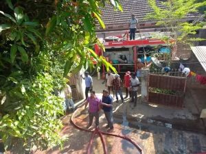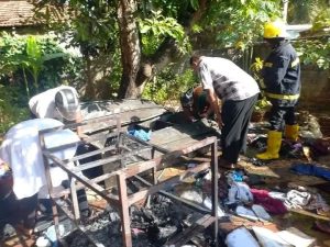 விளக்கில் தவறுதலாக பெட்ரோலை ஊற்றியதால் பற்றி எரிந்த வீடு