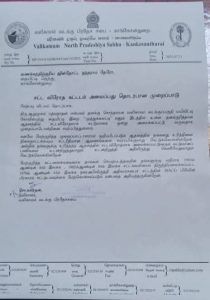 தையிட்டியில் ஆக்கிரமிக்கப்பட்ட பகுதிகளில் இருந்து உடனடியாக வெளியேறுமாறு விகாராதிபதி ஜின்தோட்ட நந்தராம தேரருக்கு வலிகாமம் வடக்கு பிரதேசசபையின் தவிசாளர் சுகிர்தனால் குறித்த கடிதம் அனுப்பப்பட்டுள்ளது