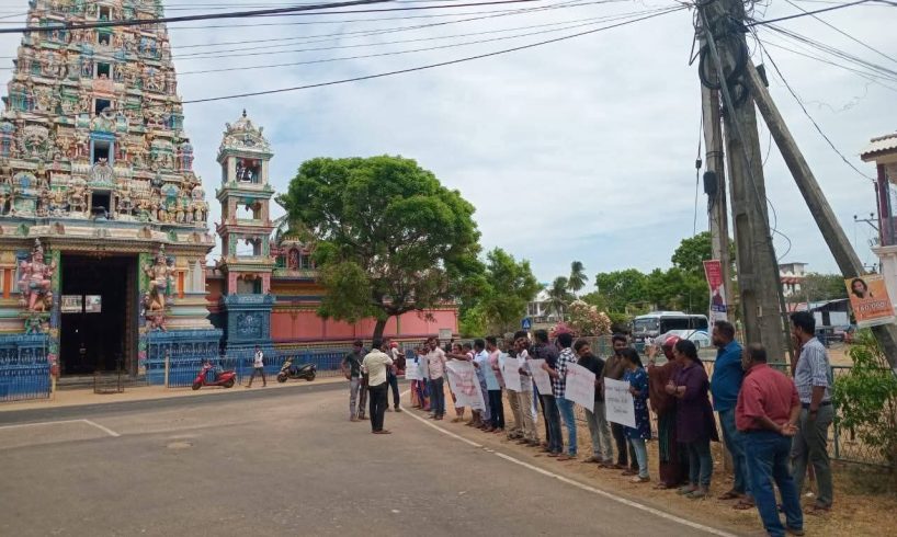 வடக்கு கிழக்கு சமூக இயக்கத்தின் ஏற்பாட்டில் சர்வதேச நீதிப் பொறிமுறையை வலியுறுத்தி இன்று சனிக்கிழமை (26) திருகோணமலை சிவன் கோவில் முன்பாக பாரிய மக்கள் போராட்டம் ஒன்று முன்னெடுக்கப்பட்டது.
