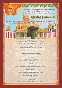 வேதாந்த மடம், ஸ்ரீ சிவகுருநாத பீட 8 ஆவது குருபீடாதிபதி வணக்கத்திற்குரிய ஸ்ரீ வேதவித்தியாசாகரர் சுவாமிகள் திருமுன்னிலை வகிக்க, தெல்லிப்பளை, ஸ்ரீ துர்க்காதேவி தேவஸ்தானத் தலைவர், செஞ்சொற்செல்வர் கலாநிதி ஆறு. திருமுருகன் அவர்கள் வாழ்த்துரை வழங்க, சர்வதேச இந்துக் குருமார் ஒன்றியத் தலைவர் சிவஸ்ரீ து.ஜெகதீஸ்வரக் குருக்கள் தலைமையில் இத்திருக்கூட்ட நிகழ்வு இடம்பெறவுள்ளது.
