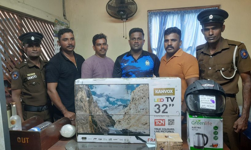 சாவகச்சேரி மடத்தடியில் ஆட்கள் இல்லாத வீடொன்றிற்குள் நுழைந்து தொலைக்காட்சிப் பெட்டி உள்ளிட்ட ஒரு இலட்சம் ரூபாய் பெறுமதியான இலத்திரனியல் பொருட்களை திருடி குடத்தனை பகுதியில் தலைமறைவாகி இருந்த நிலையில் மேற்படி சந்தேக நபர்கள் கைது செய்யப்பட்டுள்ளனர்.