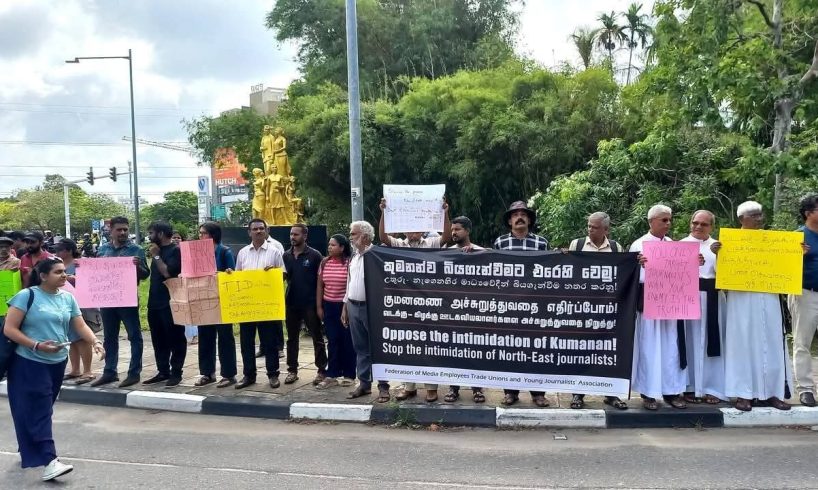 இதனை கண்டித்தும் தமிழ் ஊடகவியலாளர்களுக்கு எதிரான அநுர அரசாங்கத்தின் அடக்குமுறையை கண்டித்தும் இப்போராட்டம் இடம்பெற்றது.