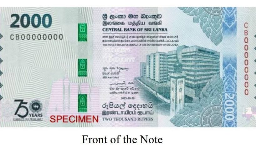 இலங்கை மத்திய வங்கியின் 75ஆவது ஆண்டு நிறைவைக் குறிக்கும் வகையில், “சுபீட்சத்திற்கான ஸ்திரத்தன்மை” (Stability for Prosperity) என்ற கருப்பொருளின் கீழ், இன்று 2000 ரூபா நினைவுப் பணத்தாள் வெளியிடப்பட்டுள்ளது.