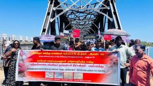செம்மணி மனிதப்புதைகுழிகள் தழின அழிப்புக்கு சான்று என்றும் ஸ்ரீலங்காவை சர்வதேச குற்றவியல் நீதிமன்றில் பாரப்படுத்துமாறும் வடக்கு, கிழக்கில் இருந்து இராணுவத்தை வெளியேற்றுமாறும் காணாமல் ஆக்கப்பட்டோருகு்கு நீதி கேட்டும் ஆர்ப்பாட்டத்தில் ஈடுபட்டவர்கள் கோரிக்கை விடுத்தனர்.
