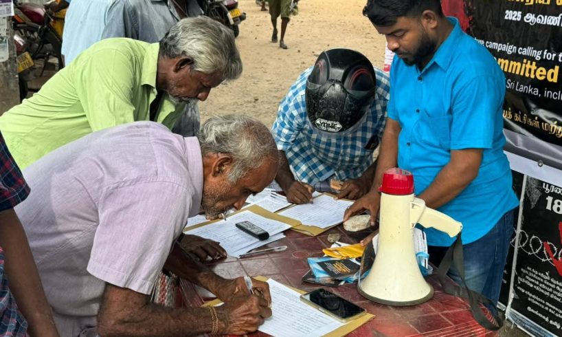 இலங்கையின் வடக்கு கிழக்கு மாகாணங்களிலுள்ள மனிதப் புதைகுழிகள் மற்றும் இனப்படுகொலைகளுக்கு சர்வதேச நீதி கோரிய கையெழுத்துப் போராட்டம்( 01.09.2025) திங்கட்கிழமை காலை தென்மராட்சியில் முன்னெடுக்கப்பட்டது.