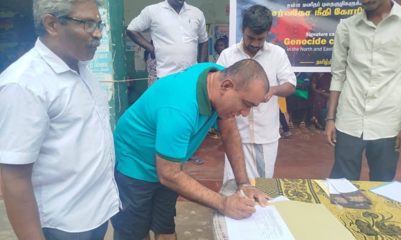செம்மணி இலங்கையின் வடக்கு கிழக்கு மண்ணில் உள்ள மனித புதை குழிக்குள் ஆனதும் நடைபெற்ற இனப்படுகொலைக்குமான சர்வதேச நீதி கோரிய கையெழுத்து போராட்டம் கடந்த 29ம் திகதி ஆரம்பமாகிய நிலையில் இன்றய தினம் பருத்தித்துறை நகர பகுதியில் பலத்த வரவேற்பின் மத்தியில் காலை 9 மணியளவில் ஆரம்பமாகி மிகவும் சிறப்பாக இடம்பெற்றது வருகிறது