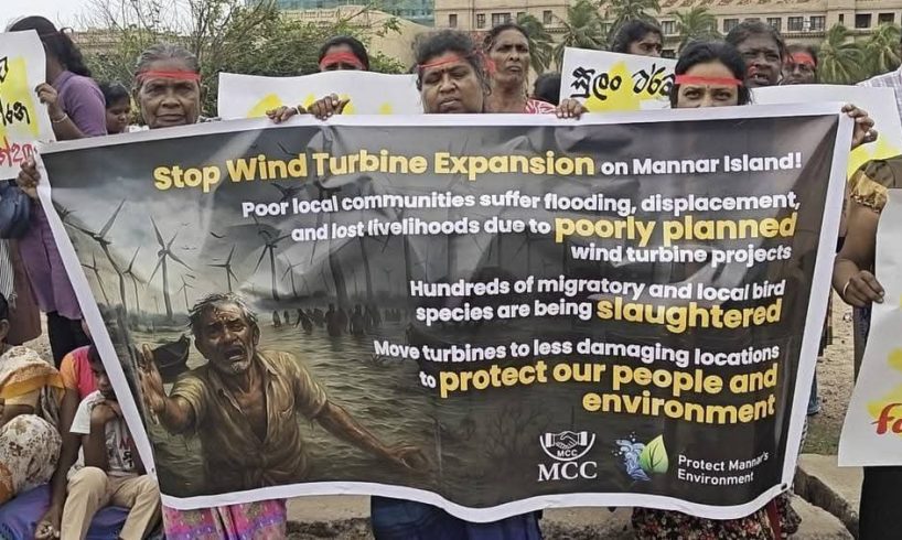 மன்னார் காற்றாலை திட்டத்திற்கு எதிர்ப்பு தெரிவித்து கொழும்பு ஜனாதிபதி செயலகத்திற்கு முன்பாக போராட்டம் ஒன்று முன்னெடுக்கப்பட்டுவருகின்றனர்.