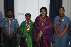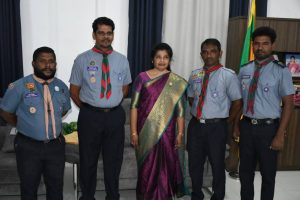 மட்டக்களப்பு மாவட்ட அரசாங்க அதிபரும் மாவட்ட சாரண சங்க தலைவருமான திருமதி ஜஸ்டினா முரளிதரன் அவர்களினால் கிழக்கு மாகாணத்தில் தரம் ஐந்து புலமைப்பரிசில் பரீட்சையில் அதிகூடிய புள்ளிகளைப் பெற்று கிழக்கு மாகாணத்தில் முதலிடம் பெற்ற குருளைச்சாரண மாணவி பிறைசூடி அபிரிஜாவுக்கு புதிய மாவட்ட செயலகத்தில் வைத்து பாராட்டுக்களையும் கெளரவத்தையும் இன்று (24) வழங்கிவைத்துள்ளார்.