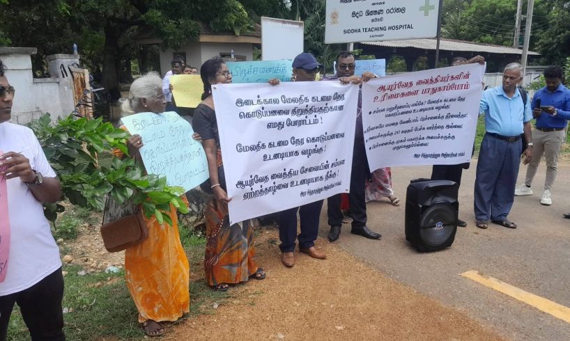 கவனயீர்ப்பு போராட்டத்தில் ஈடுபட்ட கைதடி அரச சித்த மருத்துவ சங்கத்தினர்..!