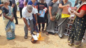 யாழில் சுழற்சிமுறையிலான உண்ணாவிரதப் போராட்டத்தில் ஐ.நாவுக்கான அறிக்கை தீ வைப்பு..!