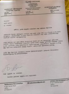 வடக்கு மாகாண கல்வி அமைச்சிற்கு கடிதம்