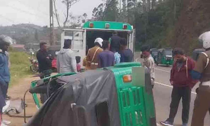 தலவாக்கலையில் இருந்து நுவரெலியா உடபுஸ்ஸல்லாவ நோக்கி பயணித்த முச்சக்கர வண்டியொன்று, வேகக் கட்டுப்பாட்டை இழந்து பிரதான வீதியில் இருந்து விலகி கவிழ்ந்தமையால் இந்த விபத்து நேர்ந்துள்ளது.