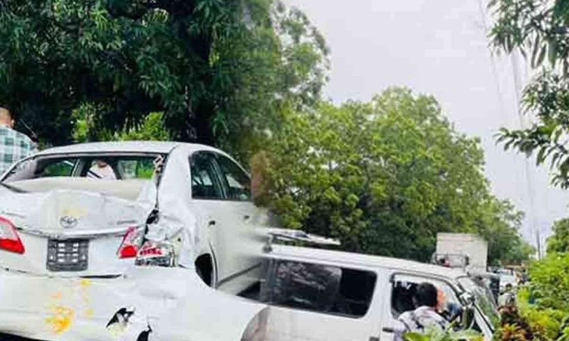 இந்த விபத்தில் பேருந்து, வேன் மற்றும் கார் ஆகியவை மோதுண்டுள்ளதாக தெரிவிக்கப்படுகிறது.