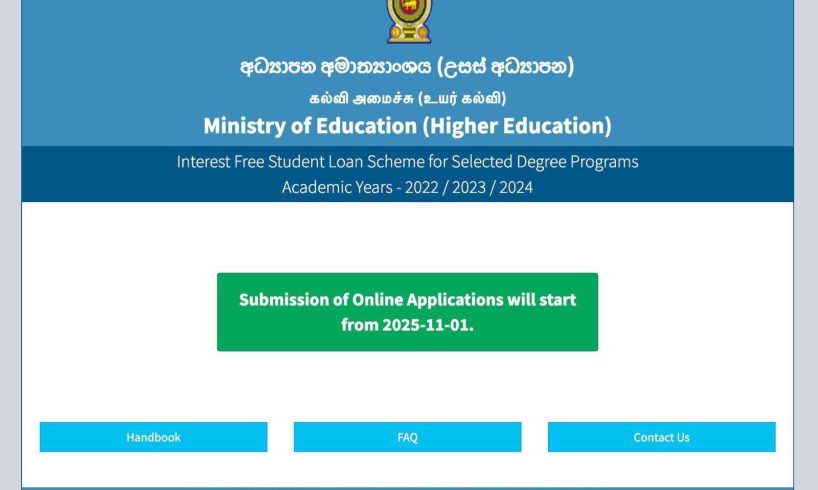 * www.studentloans.mohe.gov.lk என்ற அதிகாரப்பூர்வ இணையதளத்திற்குச் சென்று உங்கள் விண்ணப்பத்தைப் பூர்த்தி செய்யுங்கள்.
