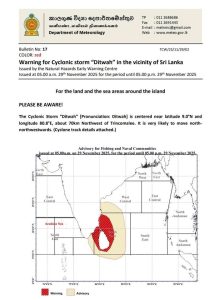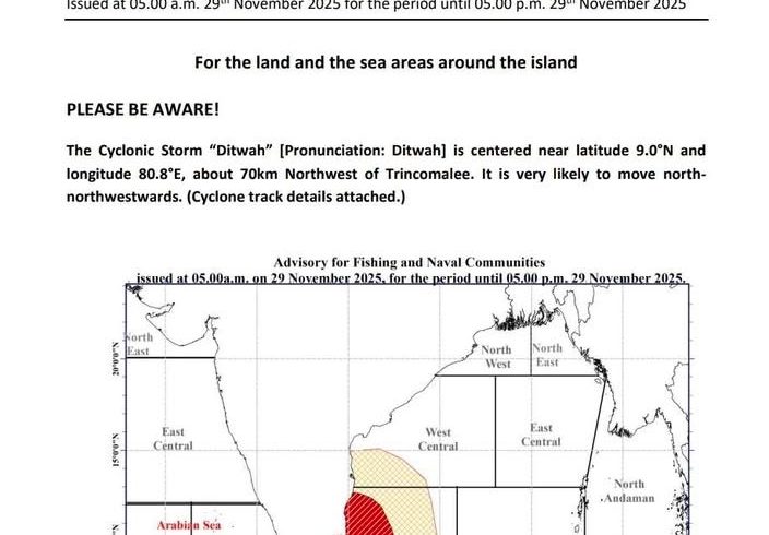 ‘டித்வா’ சூறாவளி தீவிரம் குறைகிறது – நவம்பர் 29 காலை நிலவரம்