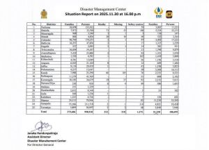 அனர்த்த முகாமைத்துவ மத்திய நிலையம் இன்று மதியம் வெளியிட்ட புதிய அறிக்கையின்படி, இலங்கையில் நிலவும் சீரற்ற வானிலை காரணமாகப் பாதிக்கப்பட்டவர்களின் எண்ணிக்கை 10 இலட்சத்தை நெருங்கியுள்ளது.