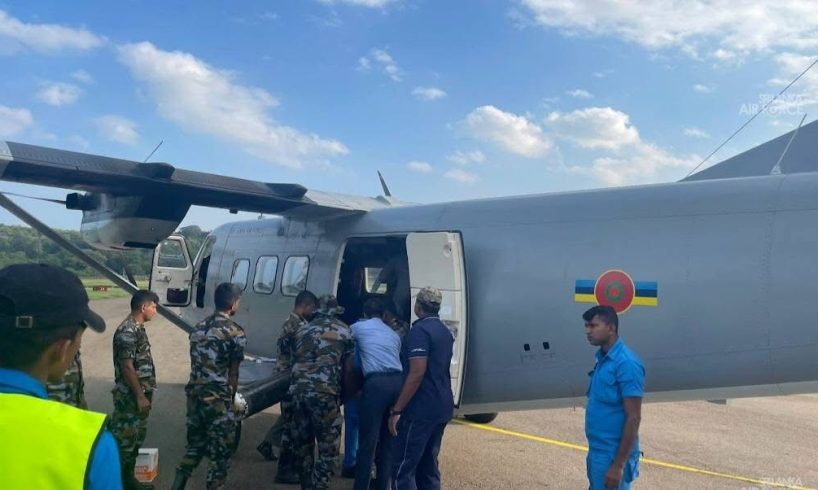 மட்டக்களப்பு ஆதார வைத்தியசாலைக்கு தேவையான ஆக்சிஜன் சிலிண்டர்கள் மற்றும் திருகோணமலை மாவிலாறு பிரதேசத்தில் வெள்ளத்தினால் பாதிக்கப்பட்ட மக்களுக்கான உலர் உணவு மற்றும் அத்தியாவசிய பொருட்கள் அடங்கிய இலங்கை விமானப்படையின் Y – 12 ரக விமானம் 30.11.2025 அன்று ரத்மலான விமானப்படை தளத்திலிருந்து சீனாக்குடா விமானப்படைத்தளத்தை வந்தடைந்தது.