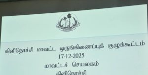 கிளிநொச்சி மாவட்டத்தின் நடப்பாண்டுக்கான இறுதி ஒருங்கிணைப்புக் குழுக் கூட்டம் நேற்று(17.12.2025) புதன்கிழமை நடைபெற்றது.