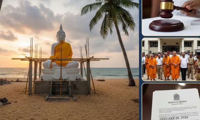 திருகோணமலை கடற்கரை பகுதியில் அனுமதியின்றி மத ரீதியான கட்டுமானங்களை அமைத்து, புத்தர் சிலையை நிறுவியது தொடர்பான வழக்கில் கைதான 10 பேரின் விளக்கமறியல் எதிர்வரும் ஜனவரி 28-ஆம் திகதி வரை நீடிக்கப்பட்டுள்ளது.