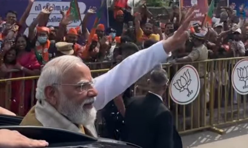 கேரள மாநிலம் திருவனந்தபுரத்திற்கு வருகை தந்த பாரதப் பிரதமர் நரேந்திர மோடிக்கு, அம்மாநில மக்கள் மற்றும் தொண்டர்கள் உற்சாகமான மற்றும் அன்பான வரவேற்பை அளித்தனர்.