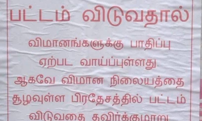 யாழ்ப்பாணம் சர்வதேச விமான நிலையத்தின் பாதுகாப்பைக் கருத்திற்கொண்டு, அதனைச் சூழவுள்ள பகுதிகளில் பட்டம் விடுவதற்கு (Kite Flying) விமான நிலைய அதிகாரசபை தடை விதித்துள்ளதுடன் பொதுமக்களுக்கு அவசர எச்சரிக்கையையும் விடுத்துள்ளது
