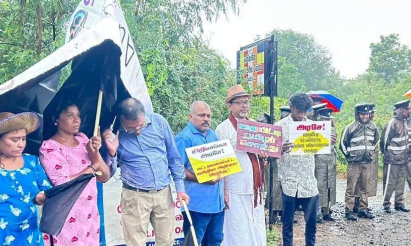 யாழ்ப்பாணம், தையிட்டி, திஸ்ஸ விகாரைக்கு எதிராக இன்றைய தினம்ஞாயிற்றுக்கிழமை கொட்டும் மழைக்குள் போராட்டம் முன்னெடுக்கப்பட்டது.