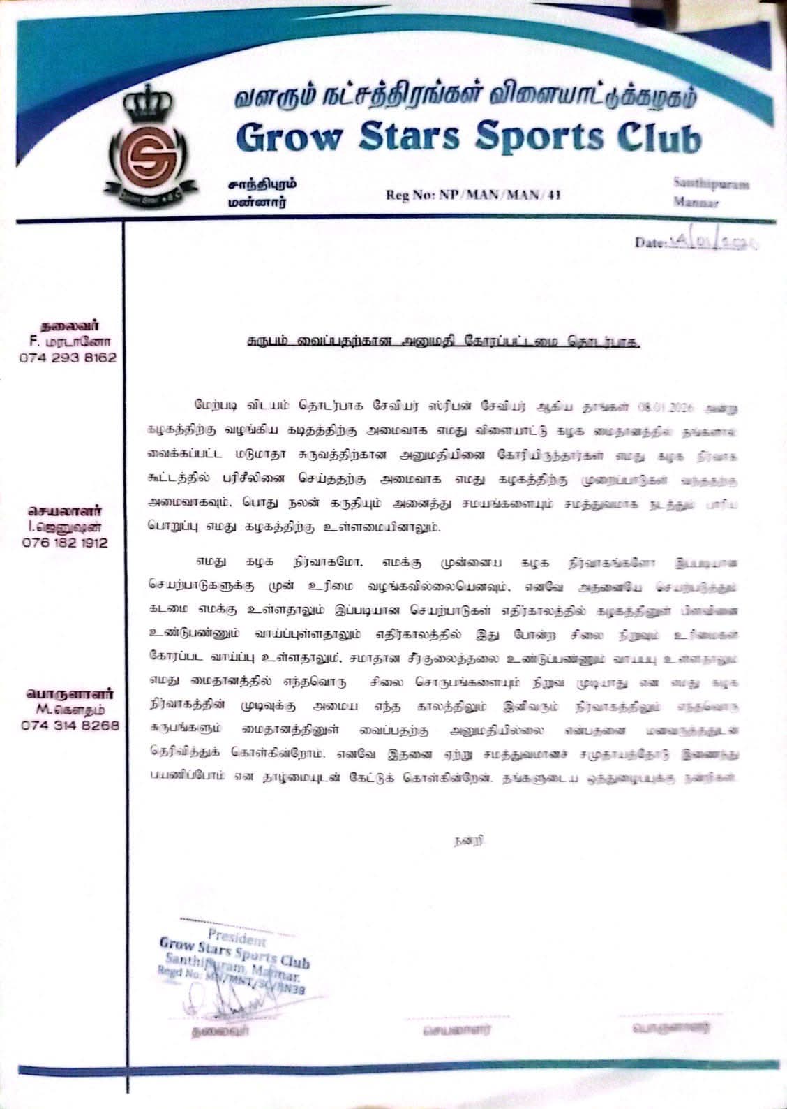 விளையாட்டுக்கழகம் மற்றும் உரிய அரச நிறுவனங்களிடம் (உள்ளூராட்சி அமைச்சு அல்லது ஆளுநர்) எவ்வித சட்டரீதியான அனுமதியும் பெறப்படாமல் இது எவ்வாறு நடந்தது?
