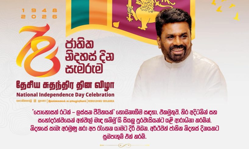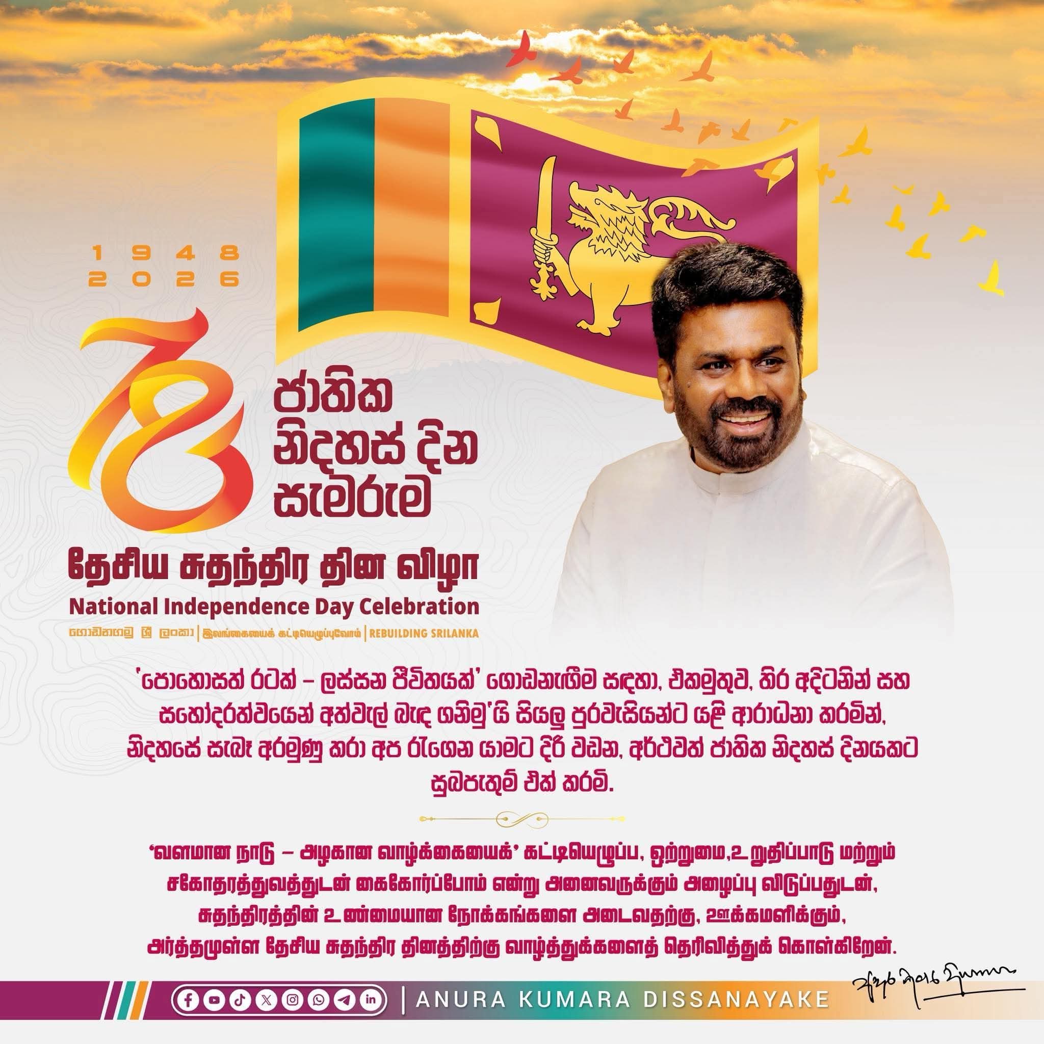 பல சவால்களுக்கு மத்தியில் பொருளாதார ஸ்திரத்தன்மையை அடைந்து, நாடு முன்னேறி வரும் ஒரு வரலாற்றுச் சிறப்புமிக்க தருணத்தில், 78 ஆவது தேசிய சுதந்திர தினத்தை நாம் கொண்டாடுகிறோம்.