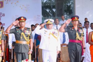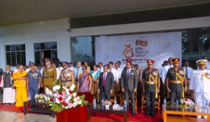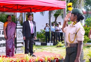 இதன்போது யாழ்ப்பாணம் இந்து மகளிர் கல்லூரி மாணவிகளால் தமிழ் மொழியிலும் புனித பத்திரிசியார் கல்லூரி மாணவர்களால் சிங்கள மொழியிலும் தேசிய கீதம் இசைக்கப்பட்டதுடன், தொடர்ந்து நாட்டுக்காக உயிர்நீத்த வீரர்களுக்காக இரண்டு நிமிட மௌன அஞ்சலி செலுத்தப்பட்டது.