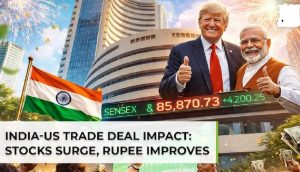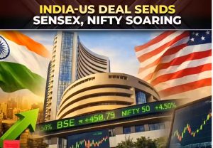 இந்தியாவிற்கும் அமெரிக்காவிற்கும் இடையே எட்டப்பட்டுள்ள புதிய வர்த்தக ஒப்பந்தத்தின் எதிரொலியாக, இந்தியப் பங்குச் சந்தை இன்று 5% வரை உயர்ந்து முதலீட்டாளர்களுக்கு பெரும் உற்சாகத்தை அளித்துள்ளது.