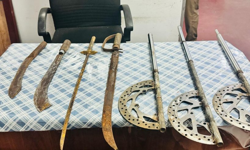 ⚔️ இந்த விசேட நடவடிக்கையின் போது, சந்தேகத்திற்கு இடமான முறையில் நடமாடிய இரு இளைஞர்கள் கைது செய்யப்பட்டனர். அவர்களிடமிருந்து, இரண்டு கூர்மையான வாள்கள், ஒரு கஜேந்திரா கோடரி ஆகியவை காவற்துறையினரால் கைப்பற்றப்பட்டுள்ளன.