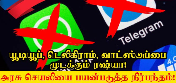 யூடியூப், டெலிகிராம், வாட்ஸ்அப்பை முடக்கும் ரஷ்யா! அரசு செயலியை பயன்படுத்த நிர்பந்தம்!