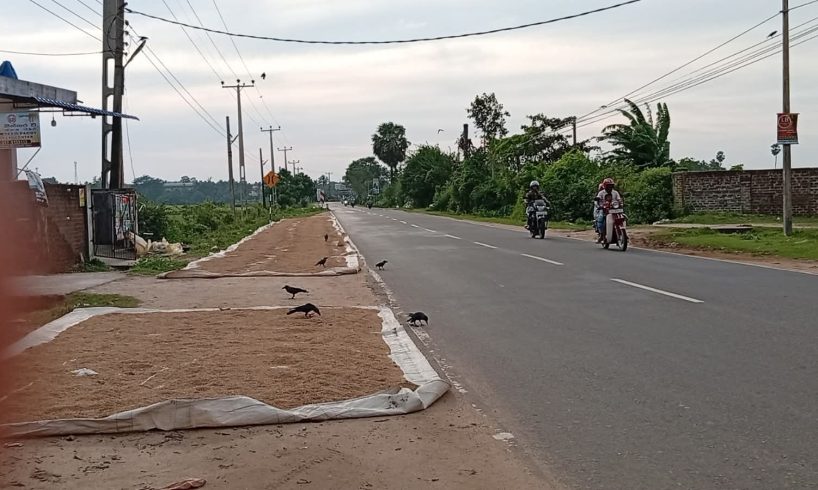 குறித்த நிலைமை போதியளவு நெல் உலரவிடும் தளம் இன்மையால் வீதியில் தாம் இவ்வாறு உலரவிடுவதாக விவசாயிகள் தெரிவிக்கின்றனர்.
