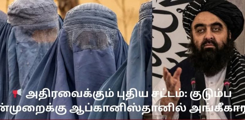 ⚠️ ஆப்கானிஸ்தானில் தாலிபான்கள் ஆட்சிக்கு வந்தது முதல் பெண்களின் உரிமைகள் கடுமையாகப் பறிக்கப்பட்டு வருகின்றன. ஏற்கனவே பெண்கள் கல்வி கற்கவும், வேலைக்குச் செல்லவும், பூங்காக்களுக்குச் செல்லவும் தடைகள் விதிக்கப்பட்டுள்ள நிலையில், தற்போது குடும்ப வன்முறையை ஒரு குறிப்பிட்ட எல்லைக்குள் அனுமதிக்கும் இந்த சட்டம் மனித உரிமை ஆர்வலர்களிடையே கடும் கண்டனத்தைப் பெற்றுள்ளது.