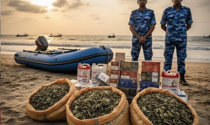 25 உறைகளில் அடைக்கப்பட்ட 992 கிலோ 800 கிராம் பீடி இலைகள் , 1,40,000 எண்ணிக்கையிலான வெளிநாட்டு சிகரெட்டுகள் மற்றும் வெளிநாட்டில் தயாரிக்கப்பட்ட சட்டவிரோத இரசாயனப் பொருட்கள் என்பன கைப்பற்றப்பட்டுள்ளதுடன் கடத்தலுக்கு பயன்படுத்தப்பட்ட ஒரு படகும் பறிமுதல் செய்யப்பட்டது.