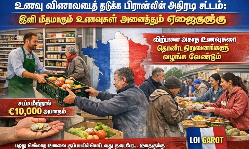உணவு வீணாவதைக் குறைக்கவும், உணவின்றித் தவிப்பவர்களுக்கு உதவவும் பிரான்ஸ் ஒரு புரட்சிகரமான சட்டத்தைக் கொண்டு வந்துள்ளது. இதன்படி, பெரிய சூப்பர் மார்க்கெட்டுகள் விற்பனையாகாத, ஆனால் உண்ணக்கூடிய நிலையில் உள்ள உணவுப் பொருட்களைத் தூக்கி எறியாமல், தொண்டு நிறுவனங்களுக்கும் உணவு வங்கிகளுக்கும் தானமாக வழங்குவது கட்டாயமாக்கப்பட்டுள்ளது.